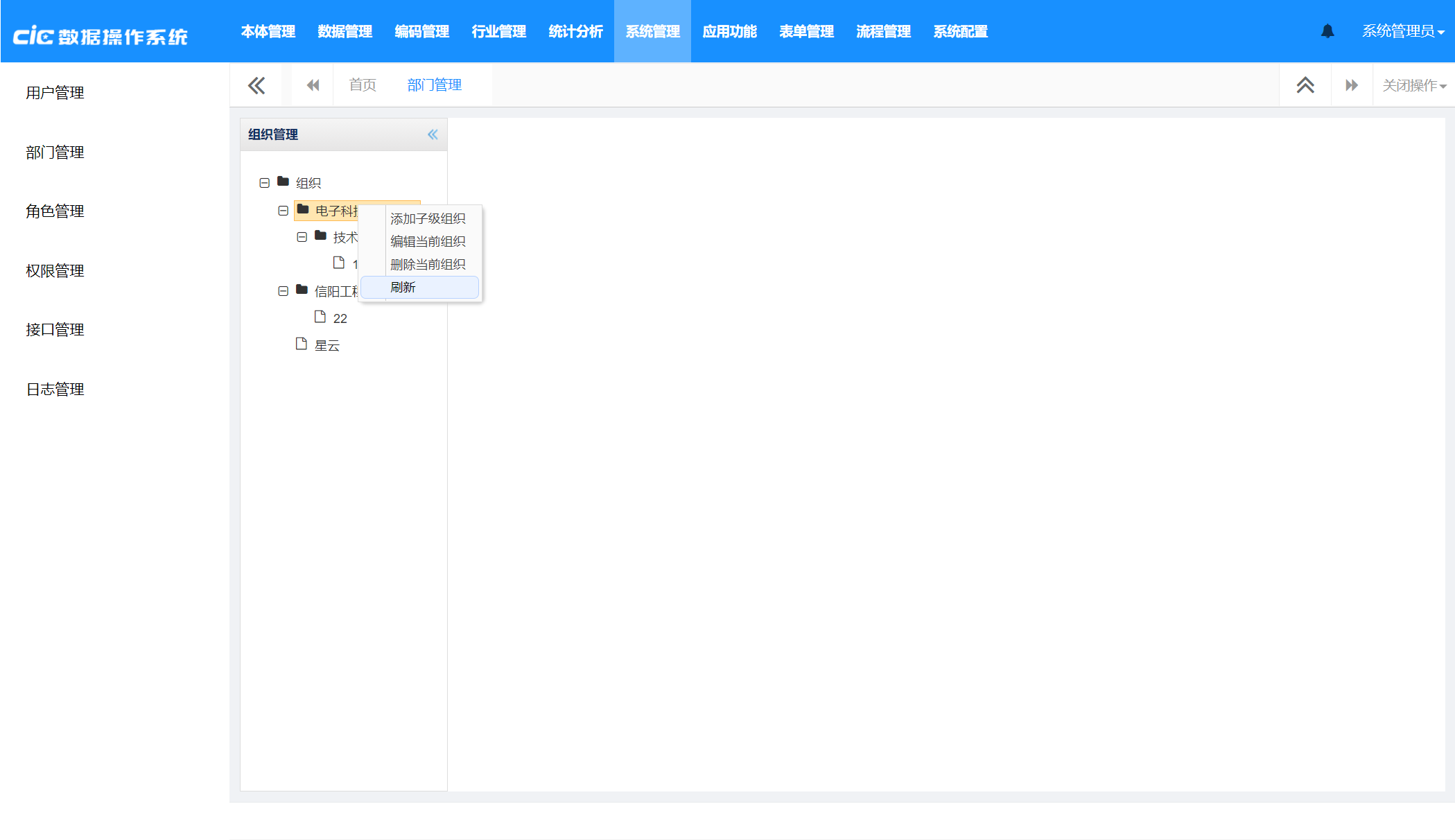 - 删除当前组织:当前组织信息及所在用户被删除